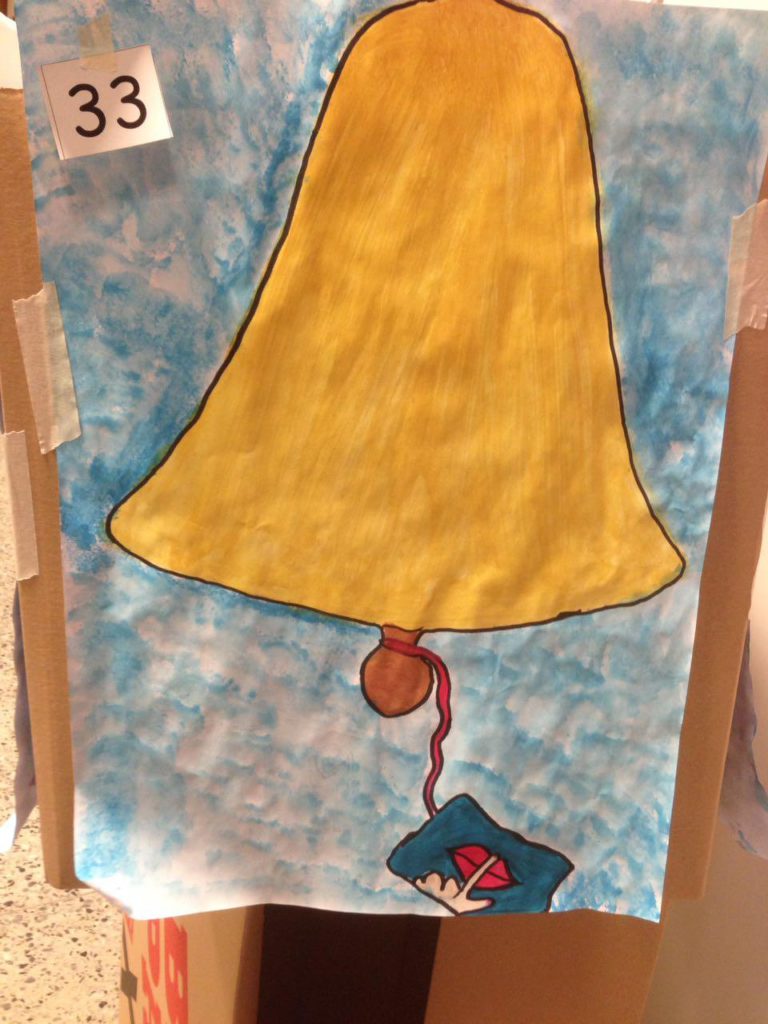 Schließlich wurden ca. 60 Redewendungen und Sprichwörter bildhaft dargestellt, von denen eine Auswahl in einem „Museumsgang“ zunächst von den Eisbäreltern zum Elternabend gelöst werden konnten.