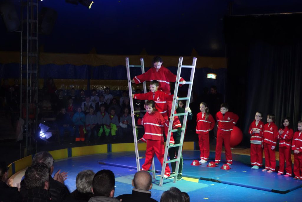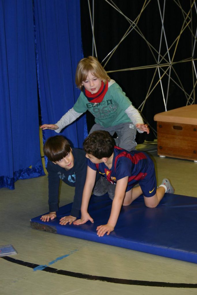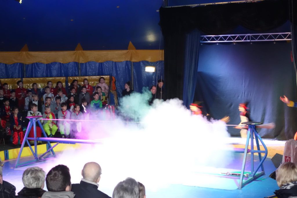 Vor den jeweiligen Aufführungen trafen sich alle Kinder auf dem Schulhof. In der Turnhalle wurden die Kinder passend zu ihren Nummern kostümiert und von ihren Trainern auf ihren Auftritt eingestimmt. Anschließend wurden die Kinder zum Marktplatz begleitet. Mit tosendem Beifall marschierten die Künstler in das Zirkuszelt ein und nahmen im separaten Bereich für die Zirkusdarsteller Platz. Hoch konzentriert und sicherlich auch ein wenig aufgeregt folgten die Kinder den Beiträgen ihrer Mitschüler und warteten gespannt auf ihren großen Moment. Jedes Kind konnte zeigen, was es in dieser Woche gelernt hat und ist sichtlich über sich hinaus gewachsen. Die Leistungen der Kinder wurden von Familie, Freunden, Lehrern, Mitschülern auch sogleich mit großem Applaus honoriert.