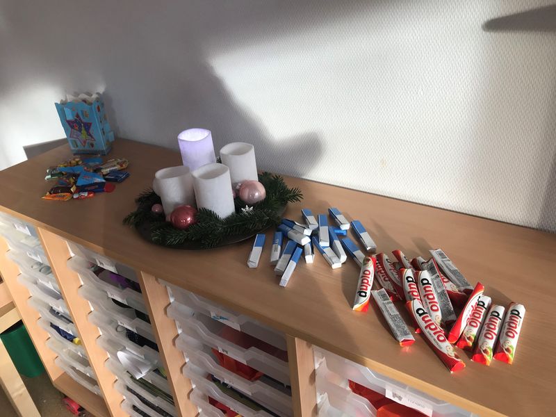 Bevor wir dann an den unterschiedlichen Stationen arbeiteten, wurde zu einem flotten Lied erst mal so richtig getanzt – mit Diskokugel! Und danach ging es ran an die Stationen: Wir haben viel gebündelt und gezählt, aufgefädelt, gelegt und geschrieben, 200 Wörter und Rechenaufgaben gesammelt und natürlich auch gemalt und gebastelt. Zur Stärkung zwischendurch hatte jeder etwas Süßes (abgepackt natürlich) mitgebracht – denn zu einer jeden richtig guten Party dürfen Süßigkeiten natürlich nicht fehlen.