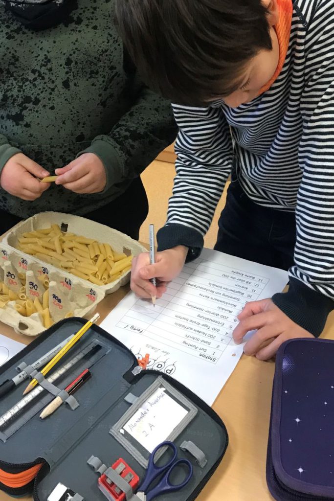 Im vorhinein überlegten wir, wie wir diesen Tag gebührend feiern können. Natürlich steht die Zahl 200 im Mittelpunkt, auch wenn wir gerade erst die Zahlen bis Hundert kennen. Doch einige können schon weit darüber hinaus zählen. Und so starteten wir den Tag – einmal gemeinsam bis 200 zählen. Das war gar nicht schwer.